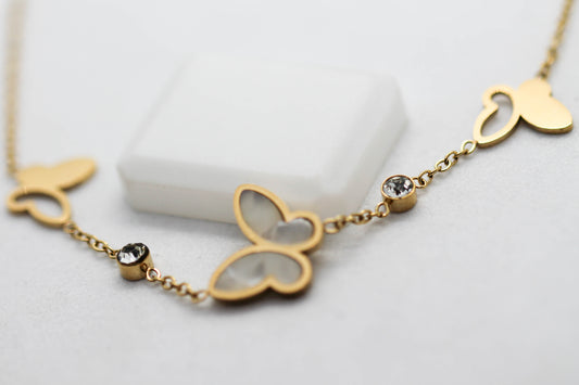 PULSERA 3 MARIPOSAS 2 CIRCONIAS 17CM + EXTENSION 4CM