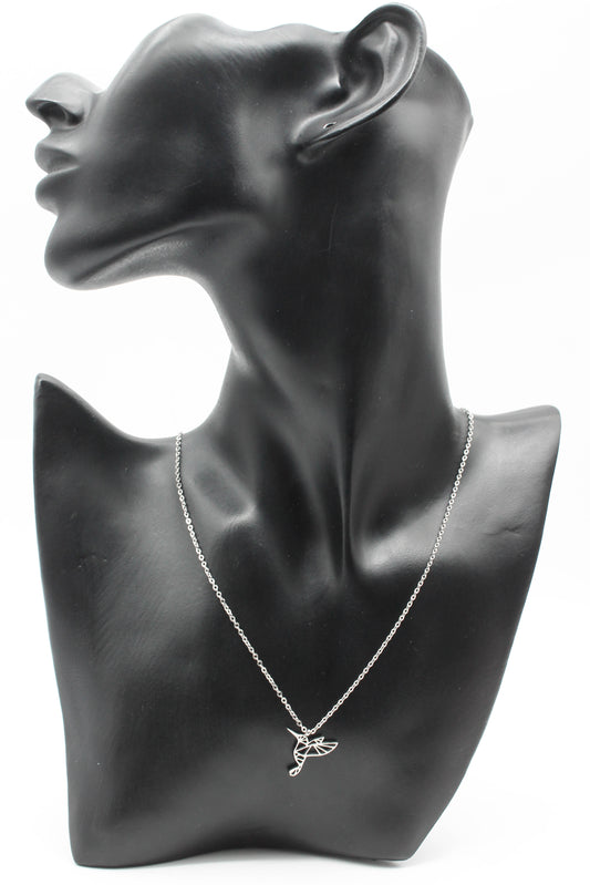 COLLAR COLIBRÍ ORIGAMI, CADENA DE 45CM + EXTENSION DE 5CM, TONO PLATEADO