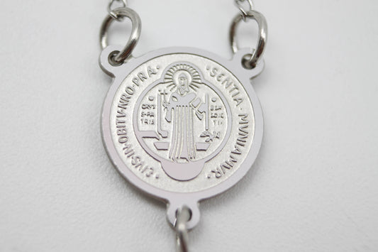 ROSARIO SAN BENITO CHICO 64 CM DE LARGO DIJE 1 X 1 CM TONO PLATEADO