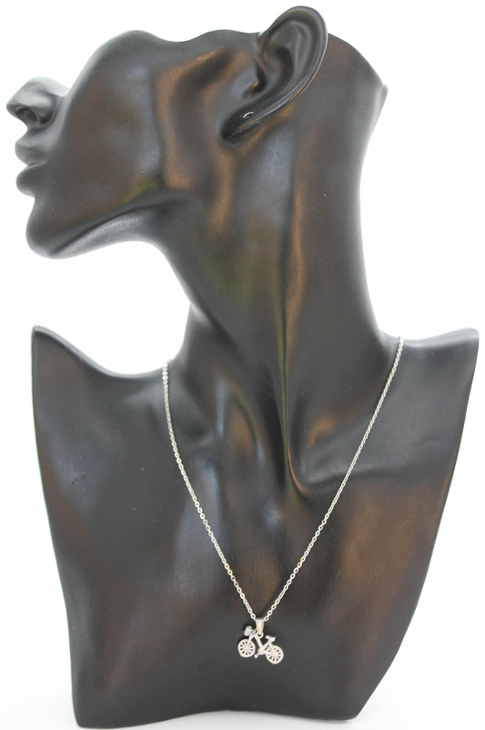 COLLAR BICICLETA, TONO PLATEADO, DIJE 18MM CADENA 45CM DE LARGO