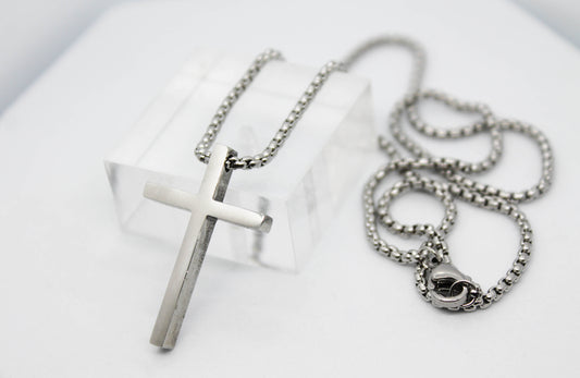COLLAR CRUZ PLANA 30X20MM CADENA EN 3 MEDIDAS; TONO PLATEADO