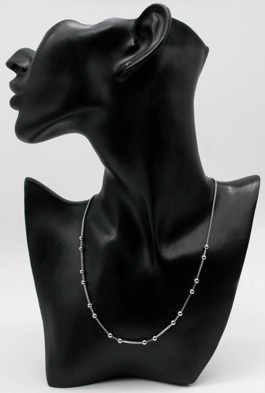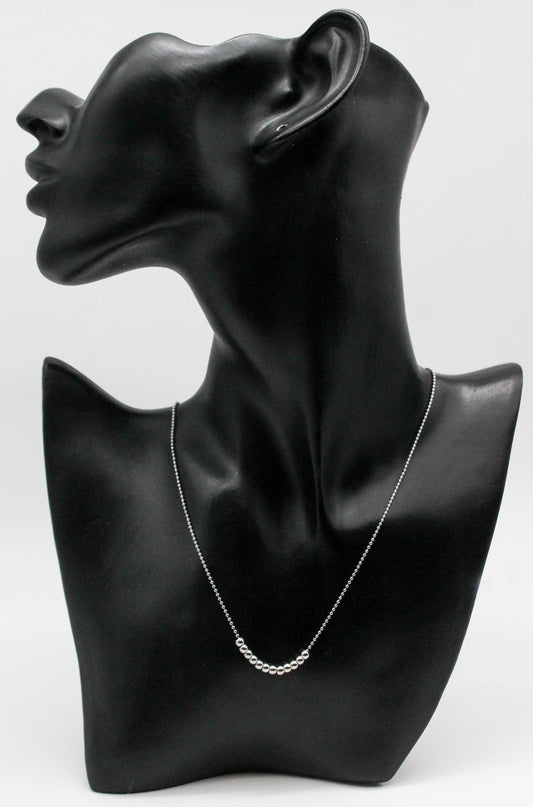 COLLAR CADENA MINI ESFERITAS 12 ESFERAS 3MM, 40CM + EXTENSION 5CM; TONO PLATEADO