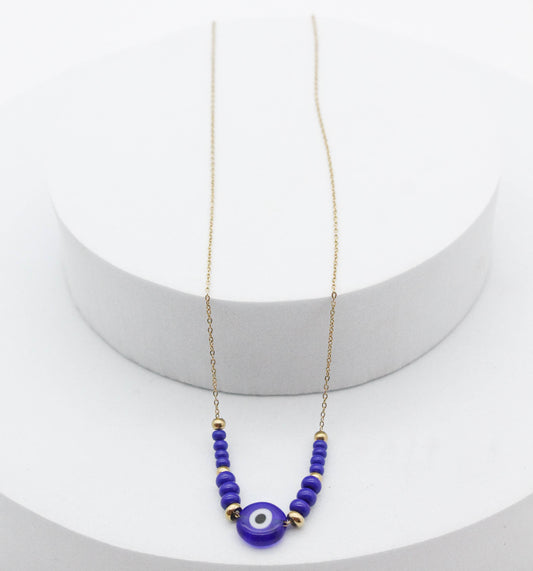 COLLAR OJO TURCO AZUL REY 10MM, 3 CHAQUIRAS MEDIANAS, 3 CHICAS 40CM DE LARGO EXTENSION DE 5CM