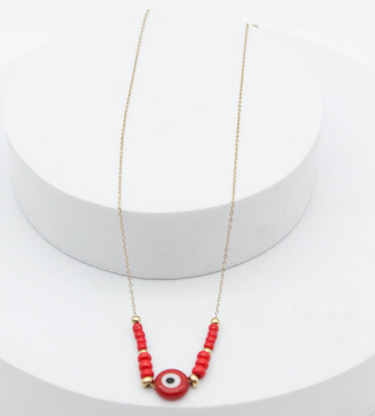 COLLAR OJO TURCO ROJO 10MM, 3 CHAQUIRAS MEDIANAS, 3 CHICAS 40CM DE LARGO EXTENSION DE 5CM
