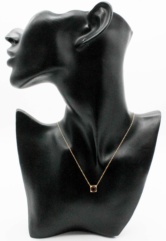 COLLAR SOLITARIO CUADRADO CIRCONIA ROJA 8MM 43CM + EXTESION DE 5 CM; TONO DORADO