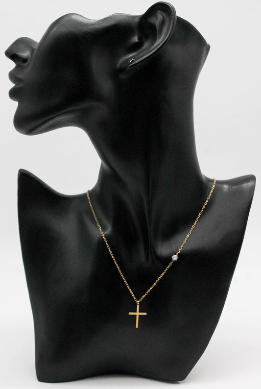COLLAR CRUZ (20MM) CIRCONIA (5MM) 42CM + EXTENSION DE 5CM; TONO DORADO