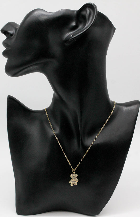 COLLAR OSITO CIRCONIAS 20MM DIJE ALEACION DE METAL, 40CM + EXTENSION 6CM; TONO DORADO