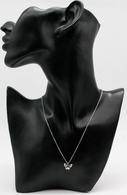 COLLAR MARIPOSA RESALTADA CIRCONIA AL CENTRO 10MM,40CM + EXTENSION 6CM; TONO PLATEADO