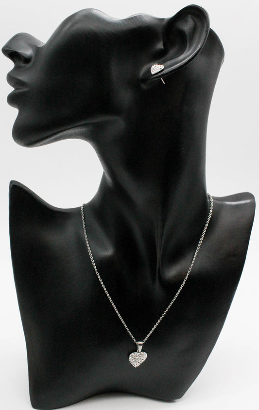 SET CORAZON CIRCONIA BROQUELES 9MM COLLAR 45 CMS DIJE 14MM; TONO PLATEADO