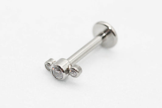 PIERCING CIRCONIA 2MM, DOS MINIS A LOS LADOS: 6MM DE LARGO, TONO PLATEADO