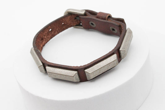PULSERA CINTURON COLOR LADRILLO 4 PLACAS DE ACERO RECTANGULARES 21 CM
