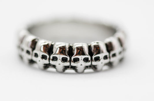 ANILLO CABALLERO MULTI CALAVERAS 6MM; TONO PLATEADO