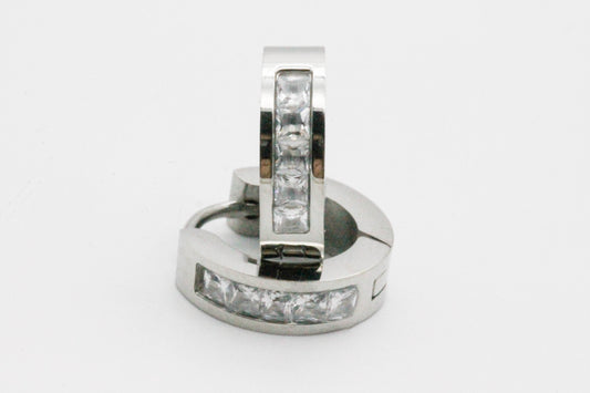 HUGGIES LISOS PLANO ANCHO LINEA DE CIRCONIAS INCRUSTADAS BLANCAS 16X3MM; TONO PLATEADO