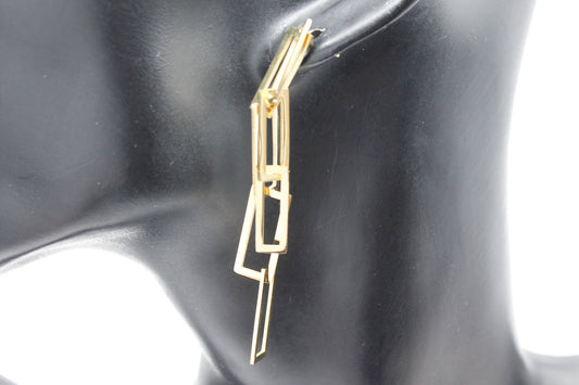 ARETES RECTANGULOS 2 TIRAS, 6.5 CM LARGO, TONO DORADO