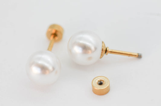 BROQUEL PERLA SINTETICA DE 6MM CON TOPE DE ROSCA, TONO DORADO