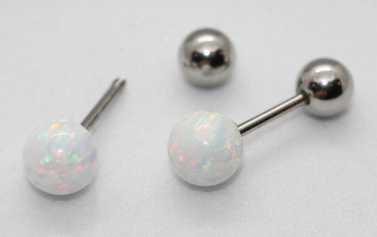 *BROQUEL PIEDRA DE OPALO NATURAL ESFERA ACERO 5MM; TONO PLATEADO*