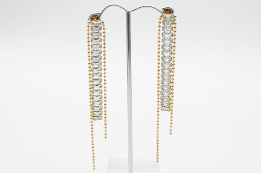 ARETES LARGOS CRISTALES RECTANGULARES CADENA ESFERAS 53MM