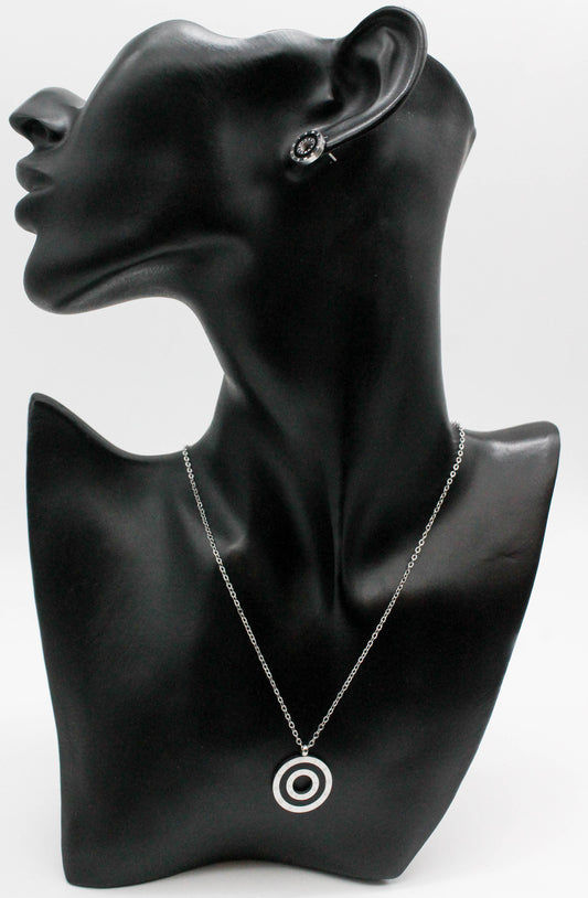 SET CIRCULO HUECO NUMEROS ROMANOS LINEA NEGRA BROQUEL 11MM; COLLAR 45CM DIJE 20MM; TONO PLATEADO