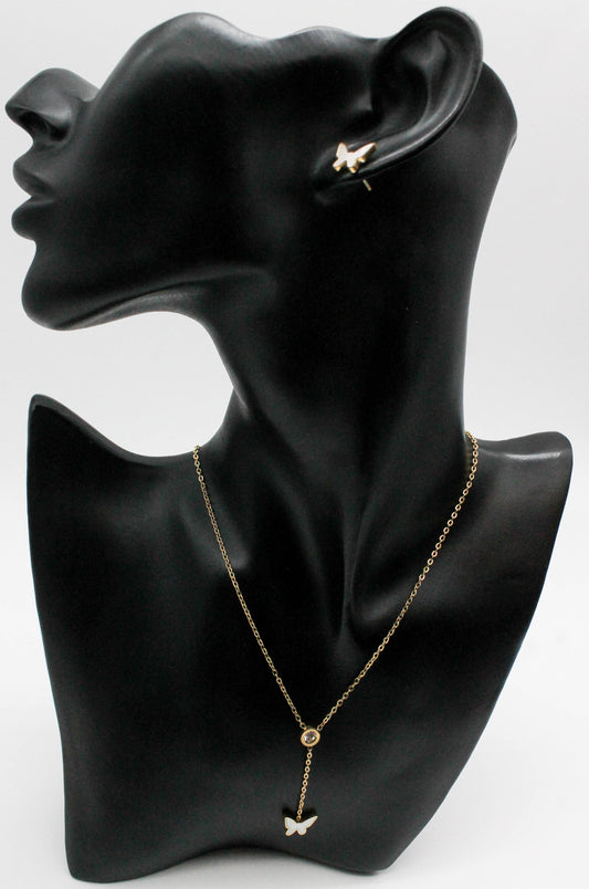 SET MARIPOSA ONIX CORBATIN, MARIPOSA HUECA/ 9MM COLLAR 45CM DE LARGO; TONO DORADO