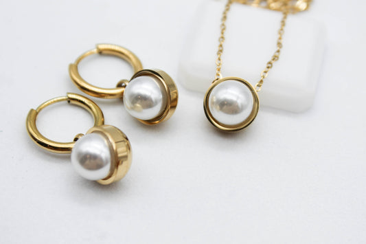 SET MEDIA PERLA SINTETICA 15MM HUGGIES TUBULAR COLLAR 45CM + EXTENSION DE 5CM; TONO DORADO