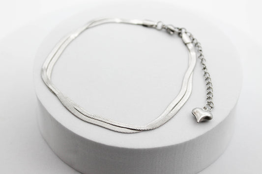 TOBILLERA DOBLE PLANCHADA, 22CM DE LARGO+ EXTENSION 5CM, TONO PLATEADO