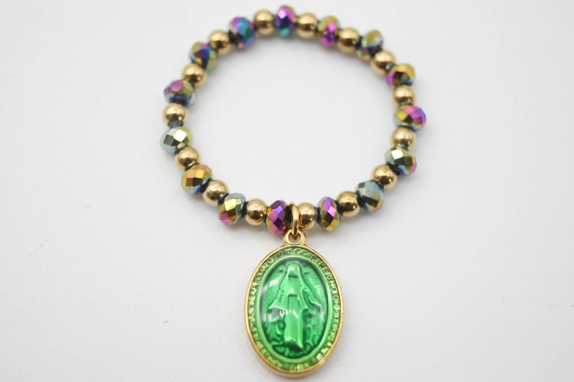 ANILLO ELÁSTICO CRISTAL TORNASOL MEDALLA "MILAGROSA"