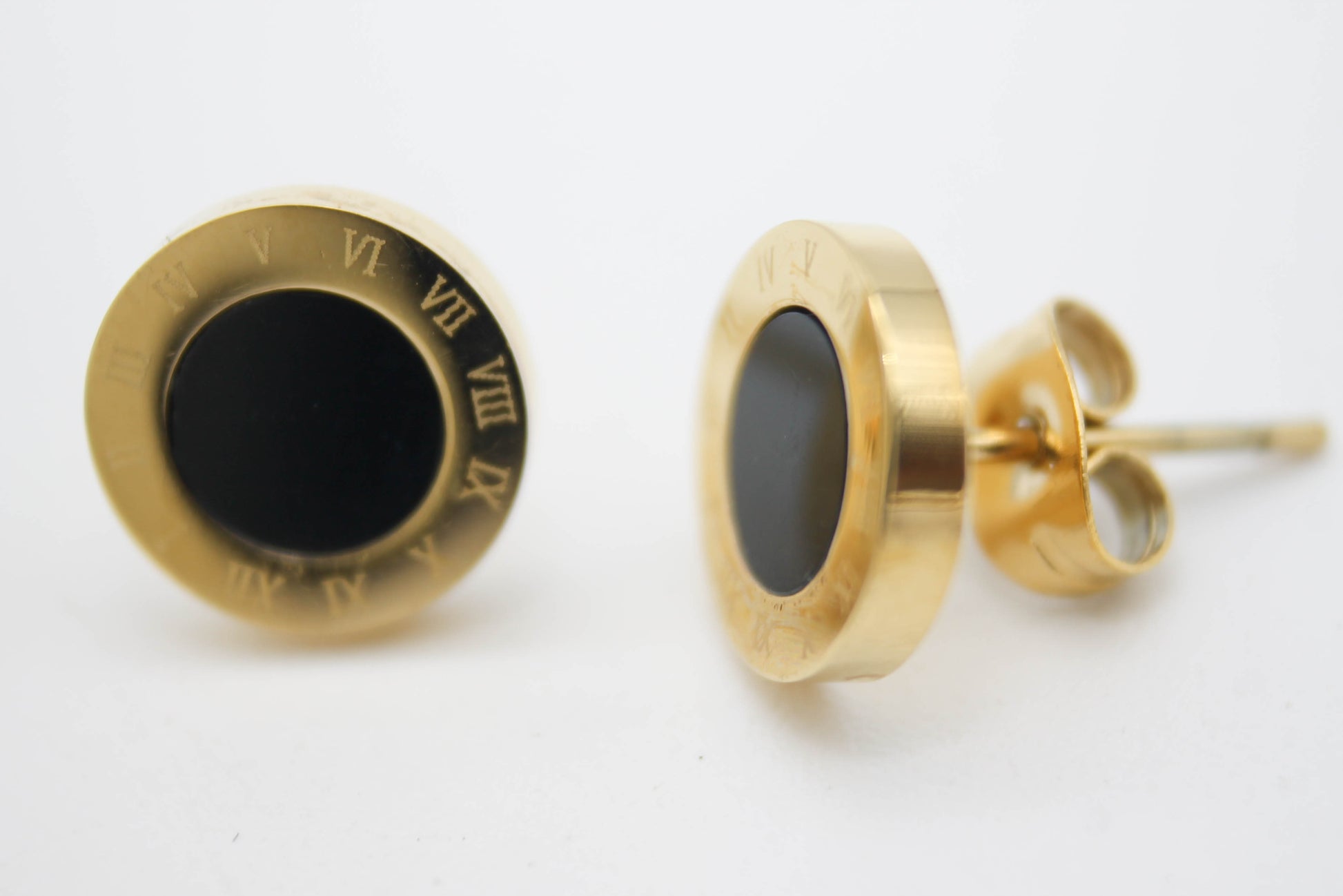 BROQUELES # ROMANOS CENTRO DE ONIX 10 MM, TONO DORADO