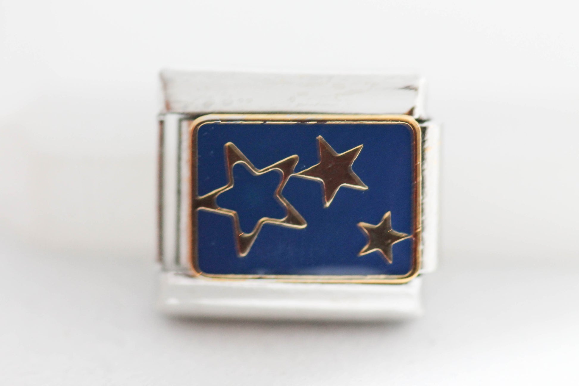 CHARM 3 ESTRELLAS FONDO AZUL REY; PULSERA ITALIANA