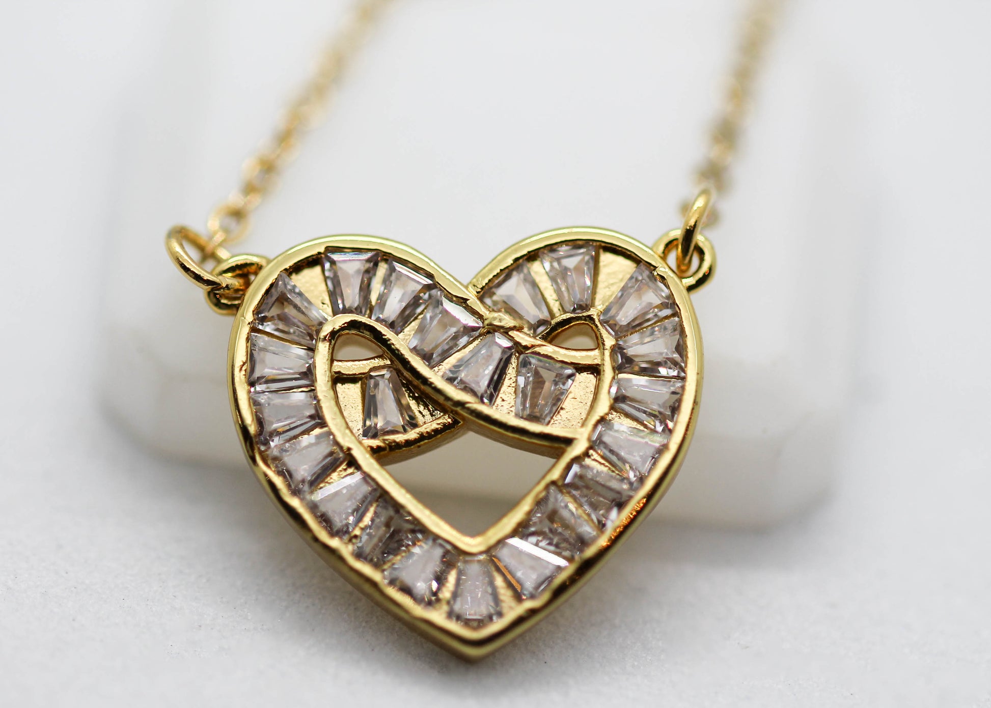 COLLAR CORAZON ENTRELAZADO CIRCONIAS 15MM, DIJE ALEACION DE METAL; 40CM + EXTENSION DE 5CM; TONO DORADO