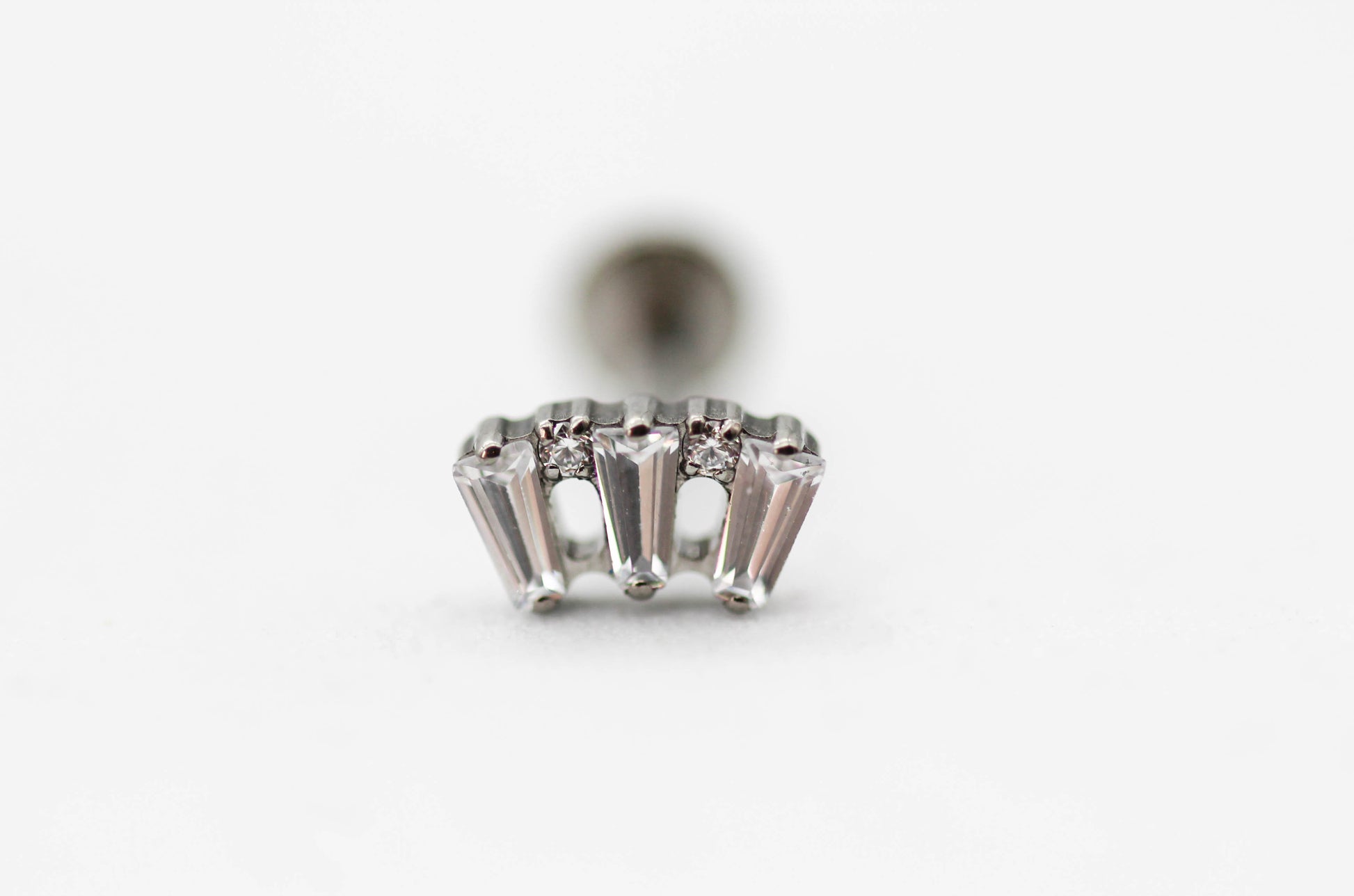 PIERCING TRES CIRCONIAS RECTANGULARES; PLATEADO