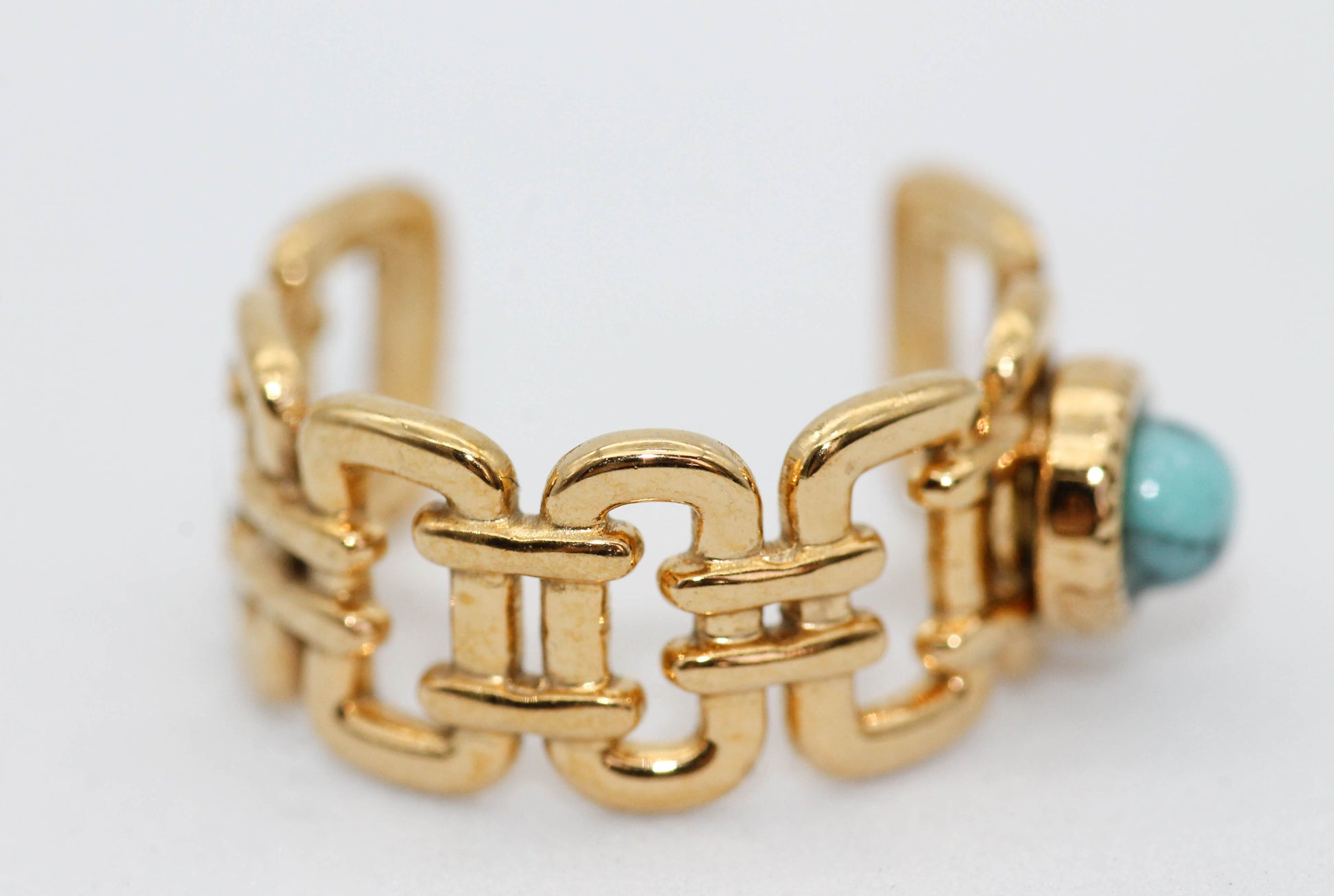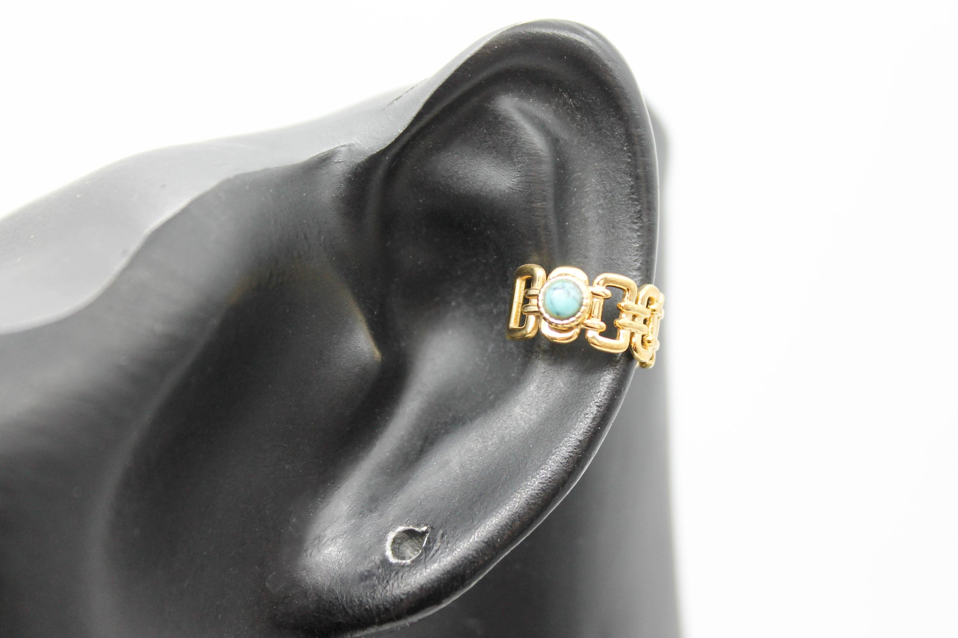 *EAR CUFF/ PIERNCIG FALSO/CONCIENCIA ESLABONES CUADRADOS ABRAZADOS PIEDRA NATURAL AZUL LINEAS NEGRAS 7MM DE ANCHO , TONO DORADO*