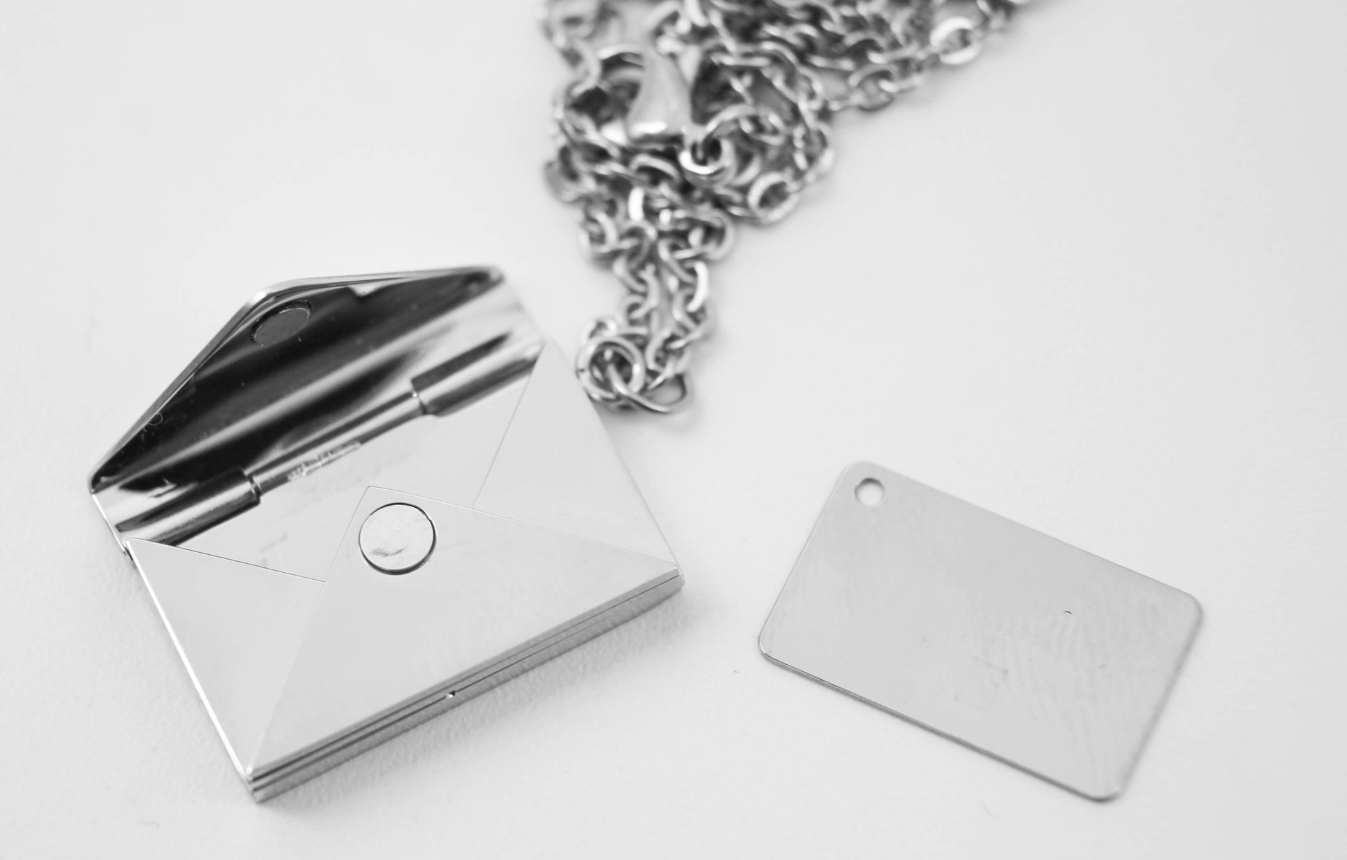 SOBRE CON CARTA CADENA 50 CM DE LARGO + EXTENSION DE 5CM, PLATEADO